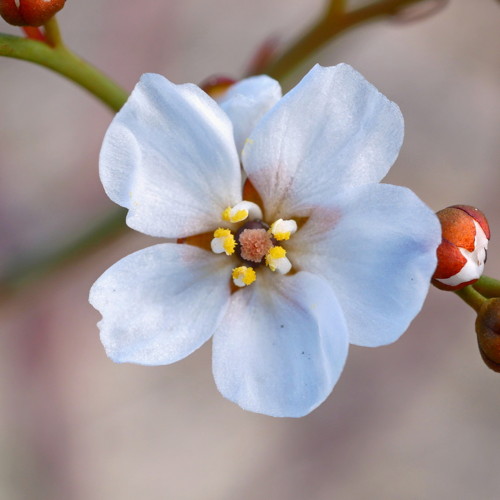 Grows in quartz grit and loam soils on the aprons of granite outcrops, in winter-wet creeks and in open ground. Experiences extremely hot desert conditions in summer.