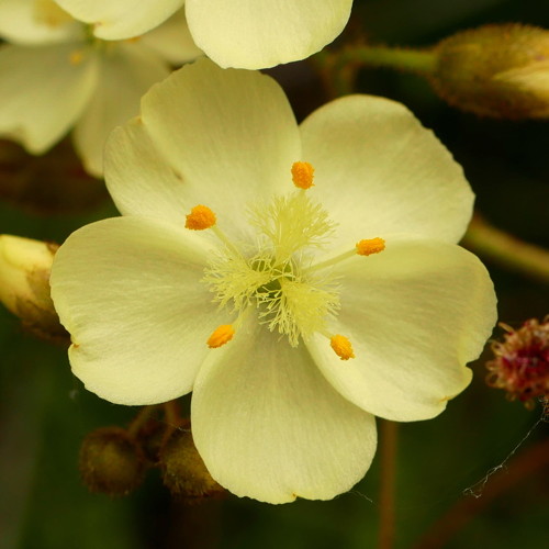 The epithet, sulphurea, is derived from the Latin sulphureus (like sulphur, pale, clear yellow), in reference to the colour of its petals.